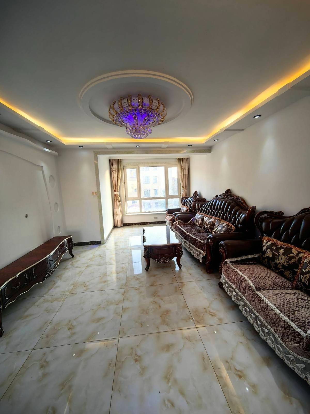 零元住房宝宇小区四楼95平实际100多点真皮沙发实木餐桌椅欧式装修25.8捆可议价可分期。钥匙在手随时看房电话微信15776001211