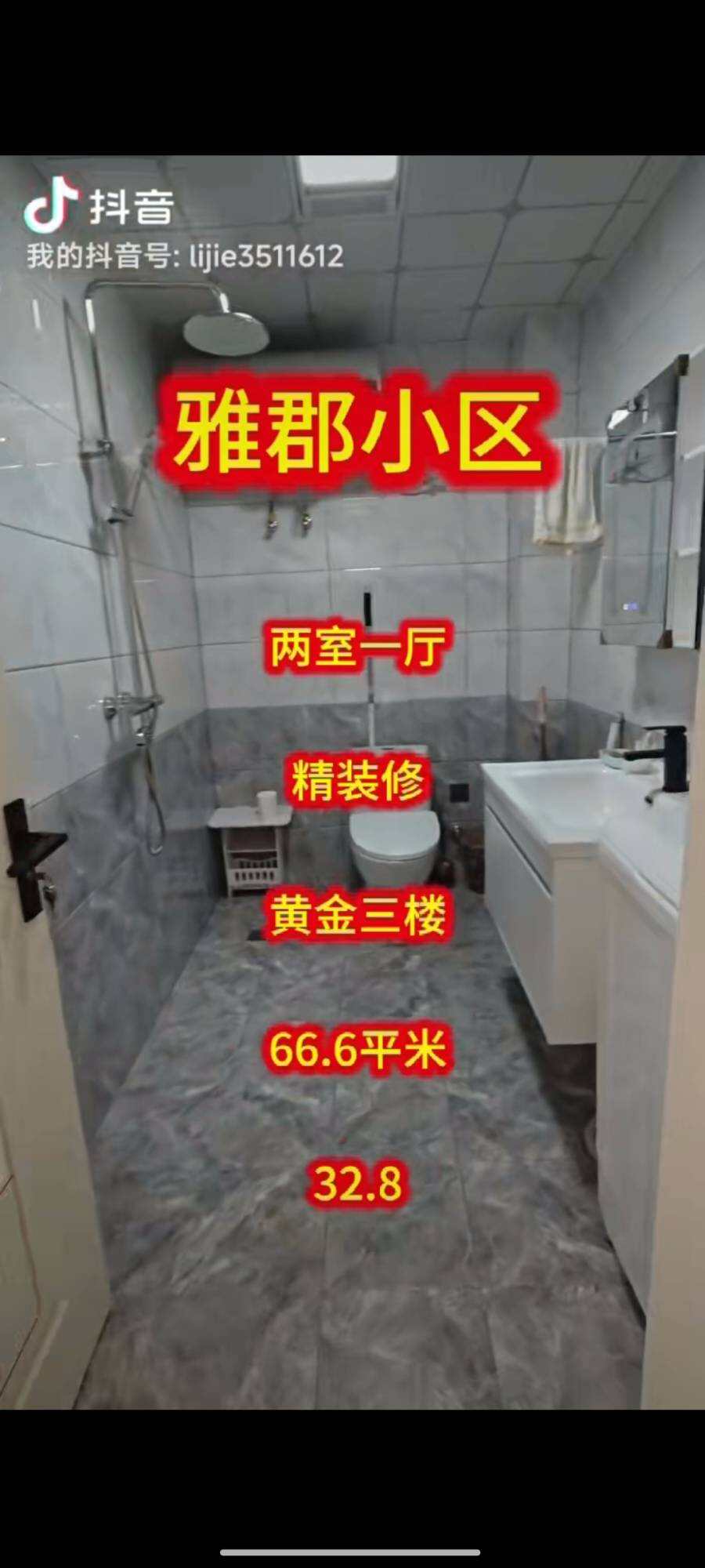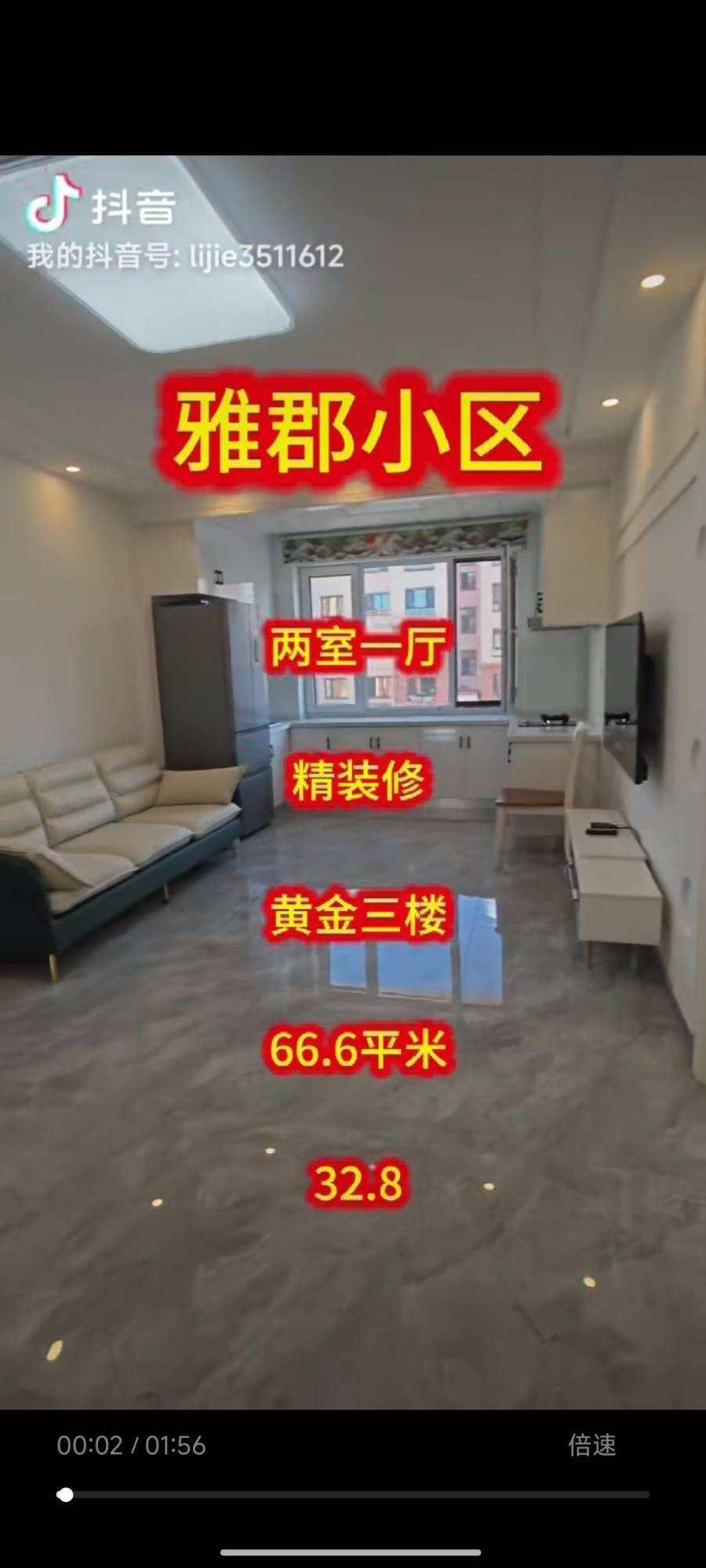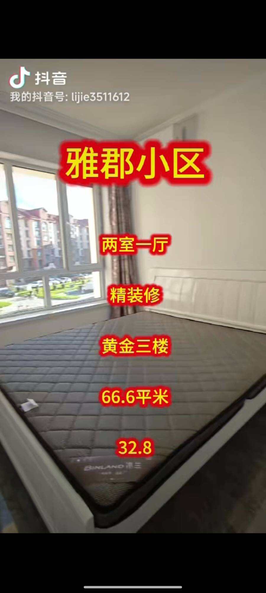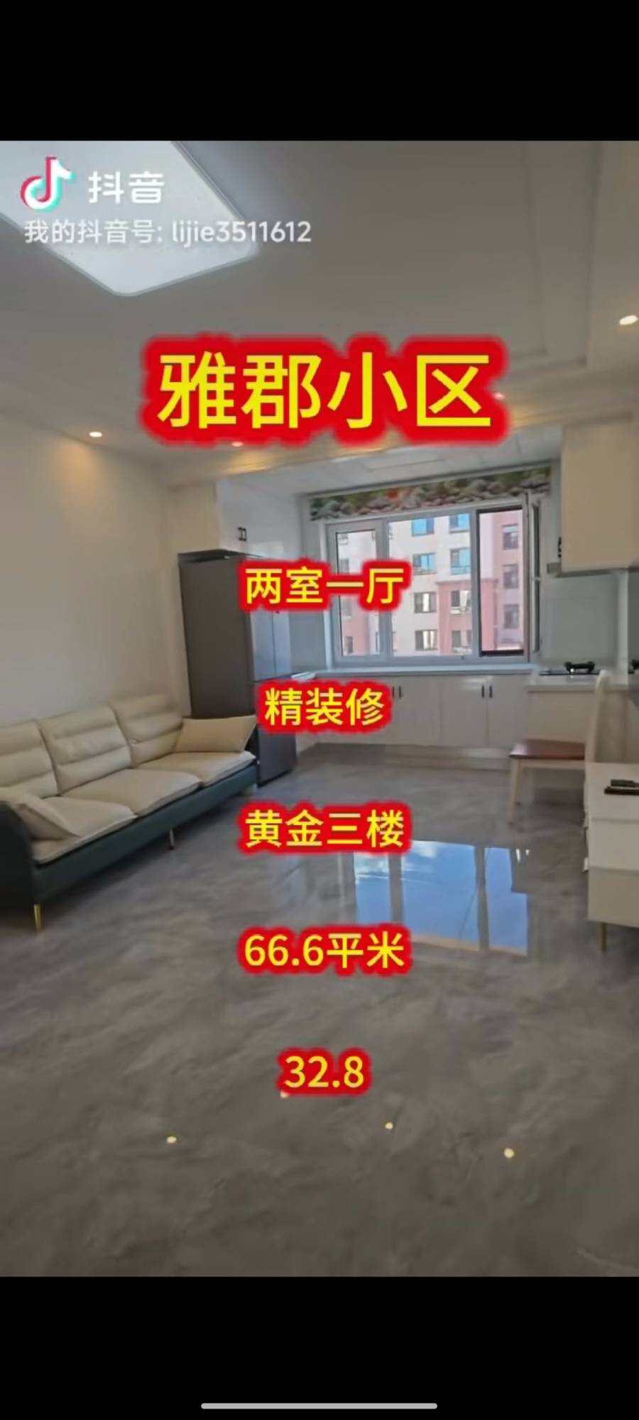 雅郡小区黄金三楼,两室一厅精装修,房证面积66.6平米,售价32.8捆联系电话13846678388