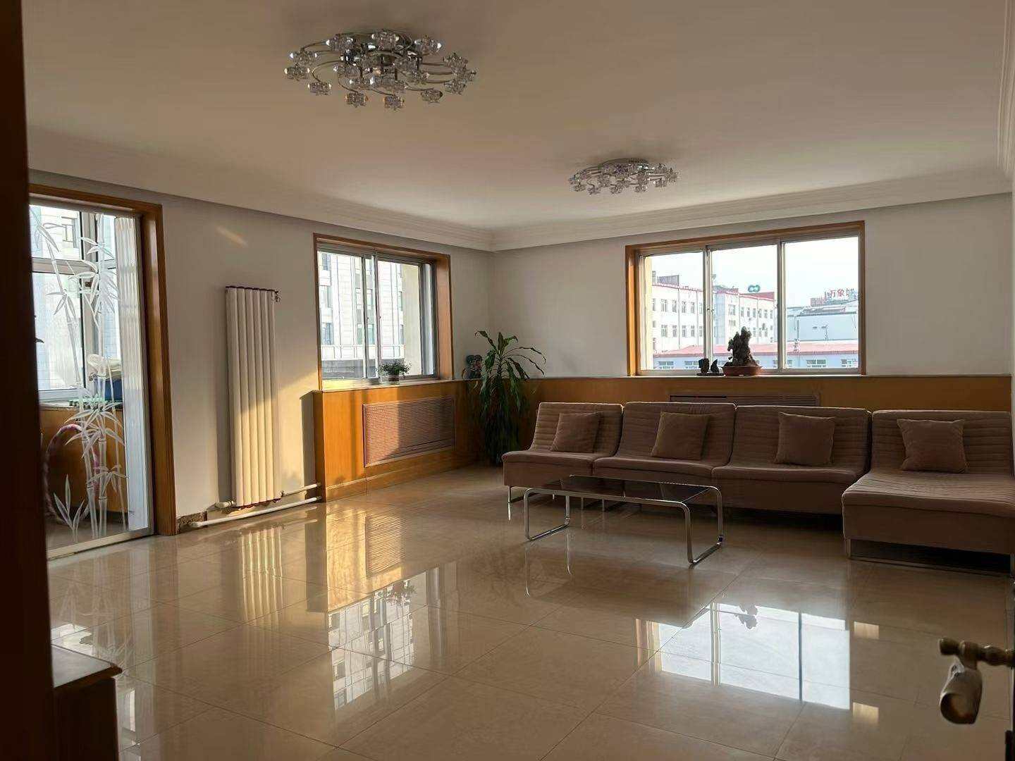 出租出售电梯房:天成御景园小区工行大厦家属楼5楼(总楼层7层)房本160平米,实际180平米,3室3厅2卫2阳台,我屋里设施齐全,拎包入住,售价67万价位可议!月租3000元,半年租1.2万包括物业费取暖费!一梯一户!